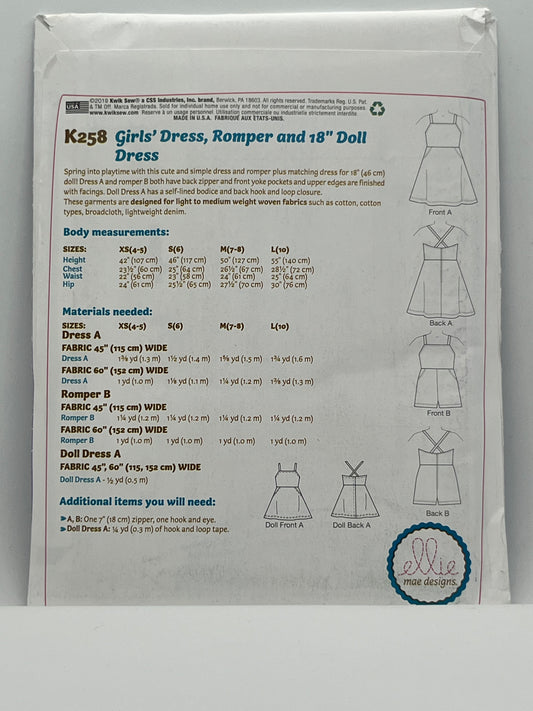 K0258 - Dress, Romper & 18" Doll Coordinates