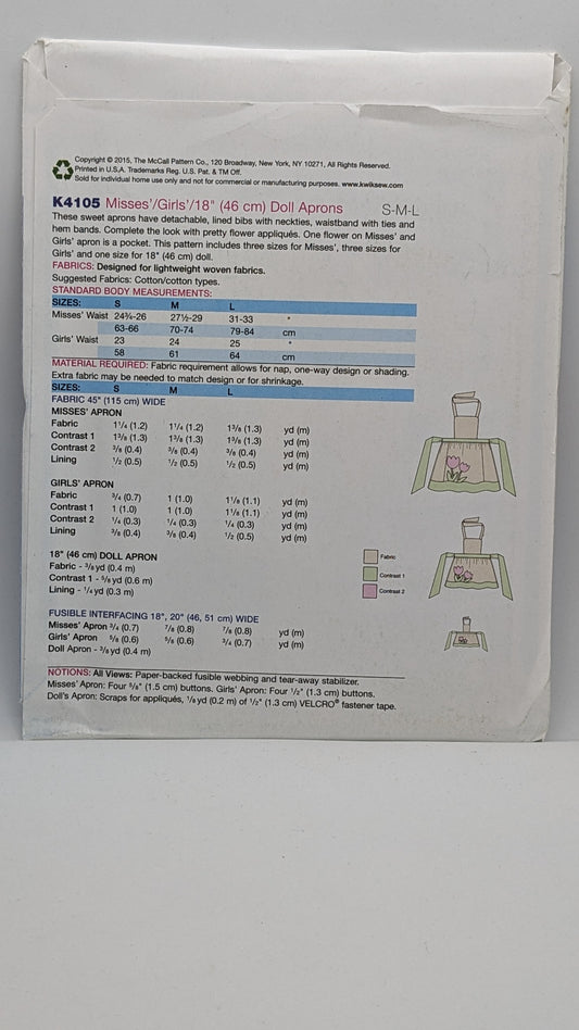 K4105 - Misses', Girls & Doll Aprons