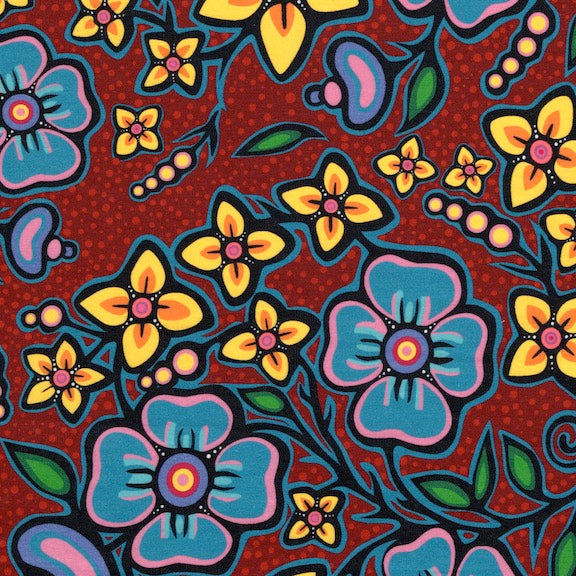 Jackie Traverse Ojibway Florals Print (Burgundy) - 100% Cotton