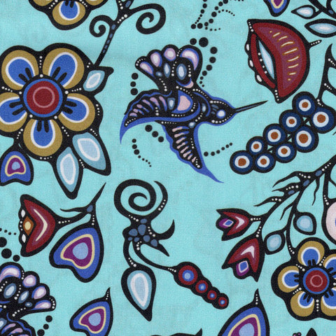 Jackie Traverse Ojibway Florals Print (Seafoam) - 100% Cotton