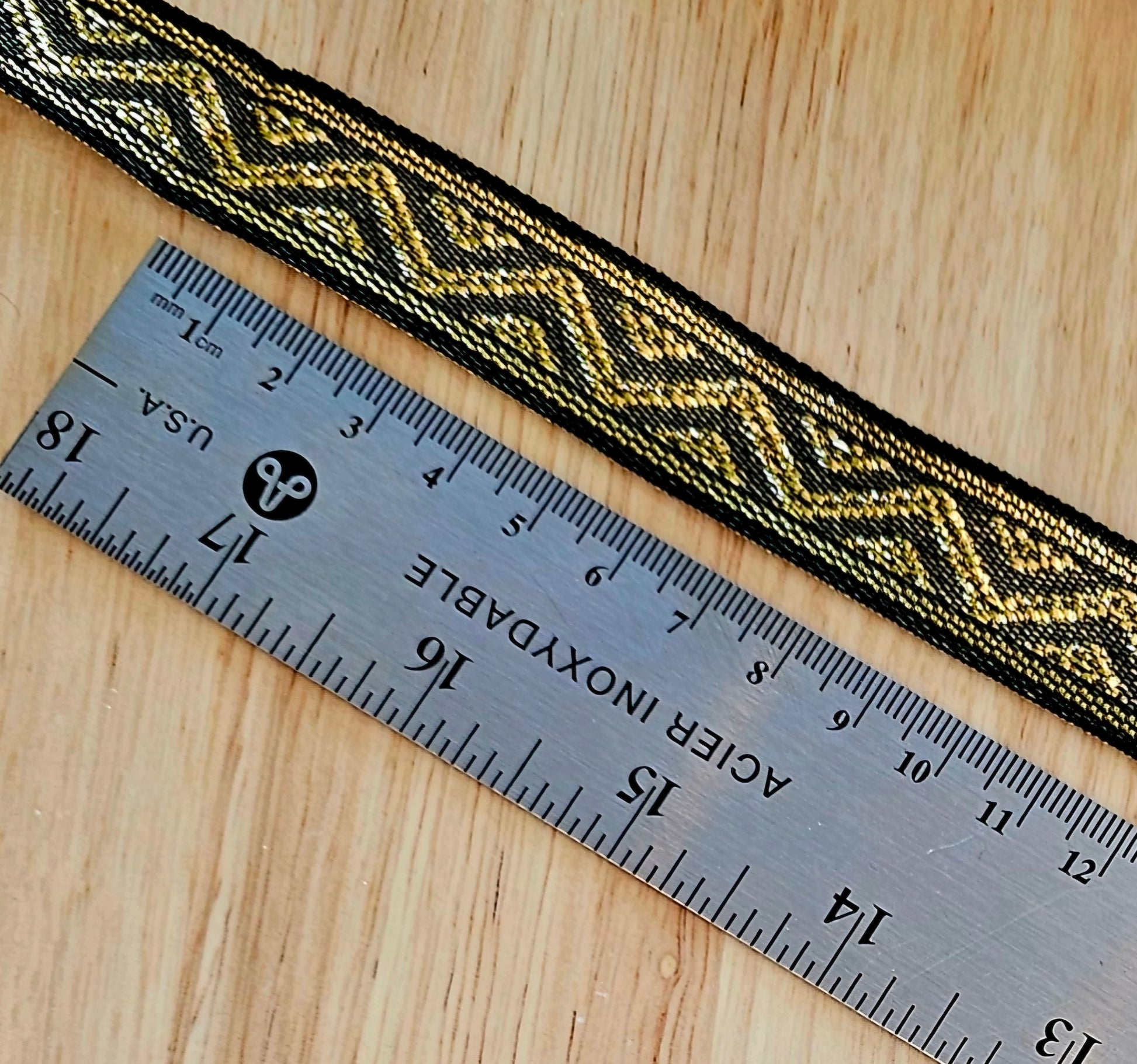Metallic Brocade Trim - Black/Gold - 20mm