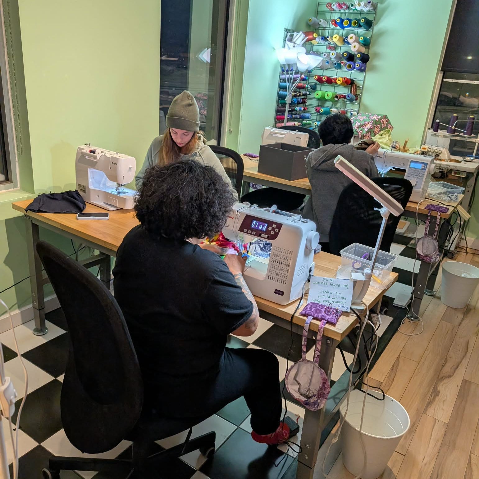 Learn in a relaxed environment where all things necessary to sew are in studio. The classroom is fully equipped with sewing machines and all the tools and notions you need to complete your project.