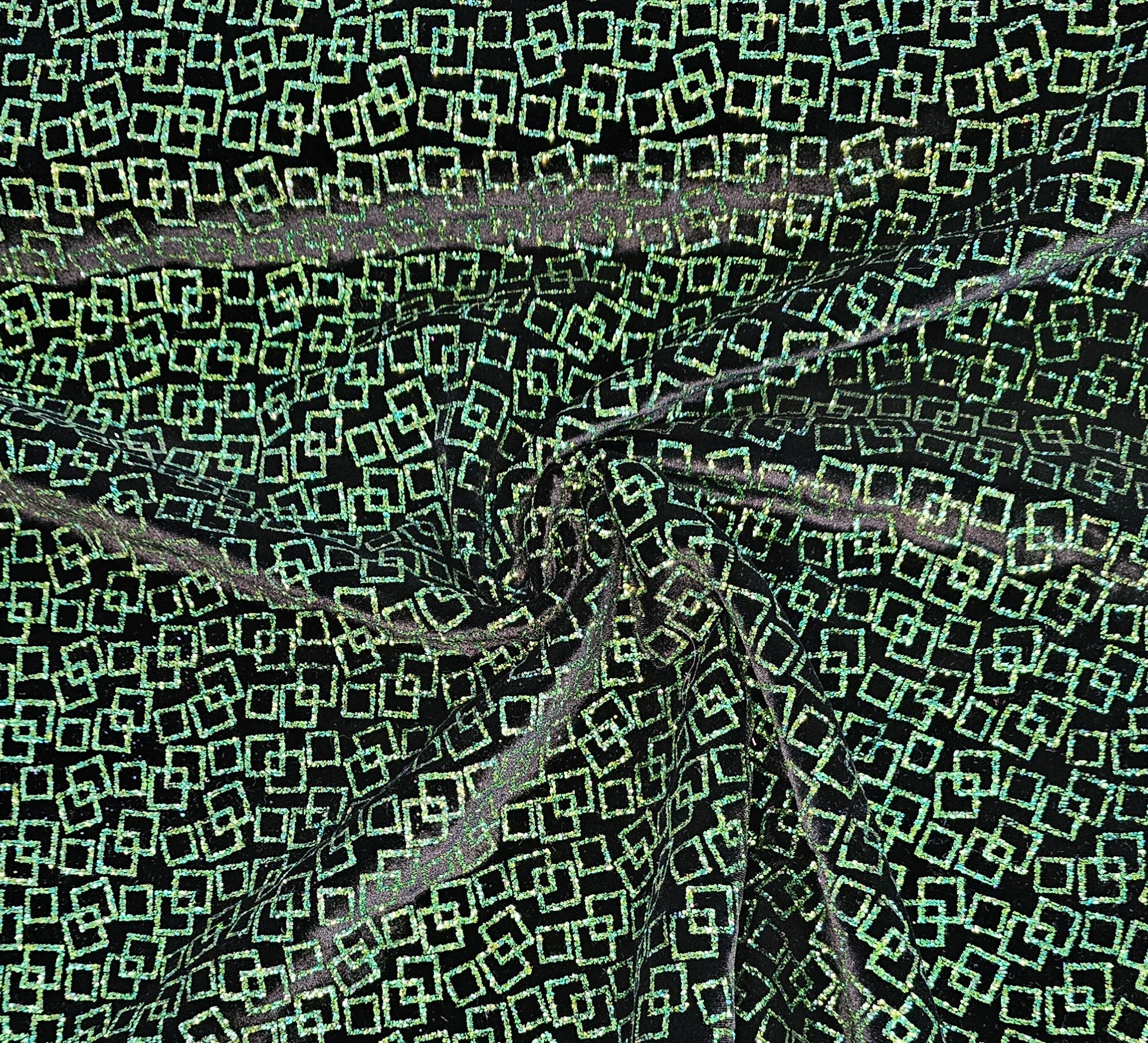 Stretch Velvet - Green Sparkle Black